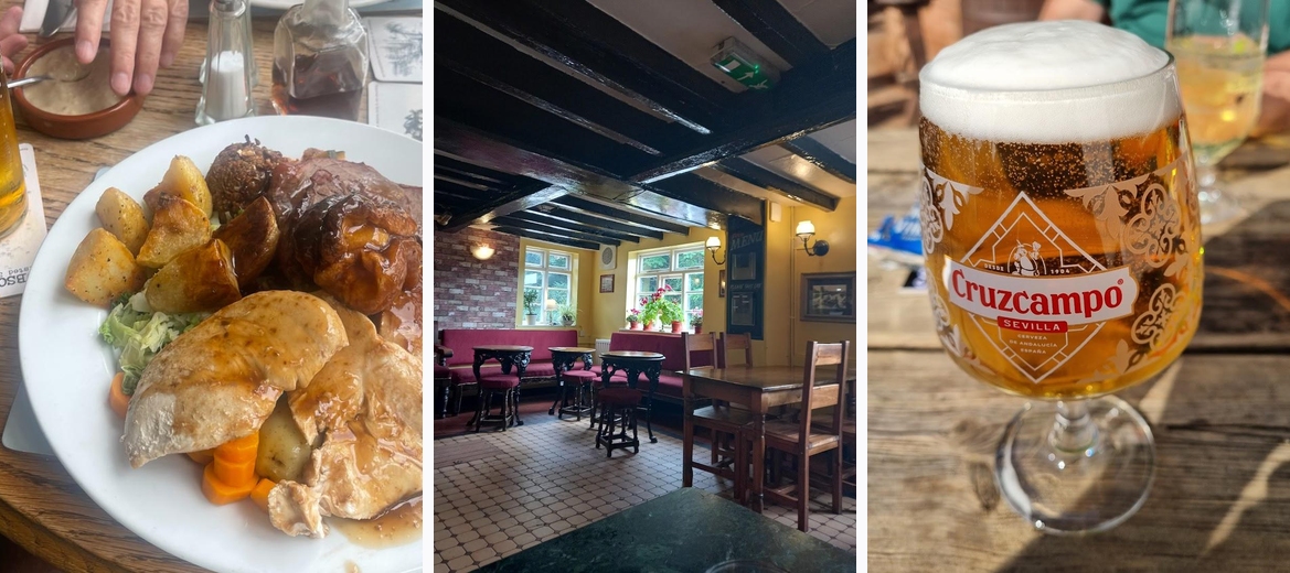 Lovely pub, we didn’t eat but had some very good beer (especially the Hobson’s Mild). Ideal location next to the canal, large car park - very important make sure you use the registration machine in the pub. Dog friendly in bar area.